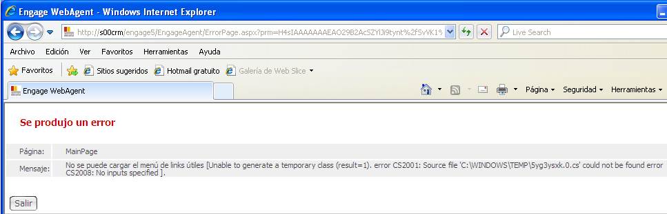 El error se presenta similar al de la siguiente imagen: