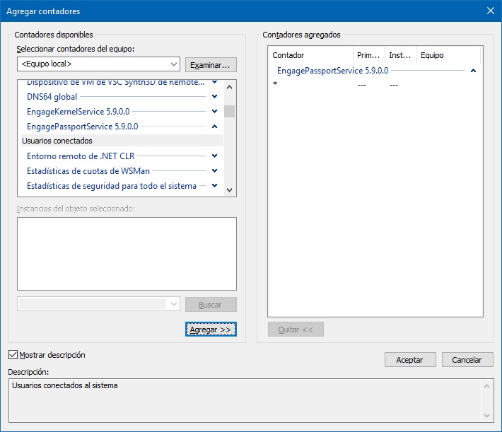 Cómo activar el contador de performance de EngagePassportService en el monitor de performance de Windows (PerfMon).